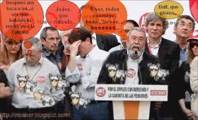 Asi que ver a los sindicatos en plataformas que defienden a los desahuciados es una burla dantesca que solo una cara de cemento armado de la mejor calidad les permite vocear a favor de quienes han arruinado a sabiendas de que que han sido desahuciados por su culpa por accion u omision. "
